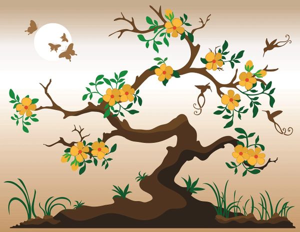 Beautiful Tree Birds Flowers Art Canvas Painting Frameless
