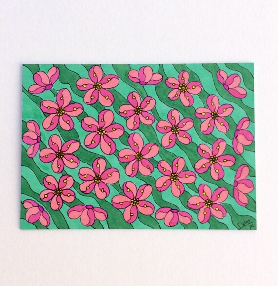 Cherry Blossom Flowers Aceo Art Card Design Japanese Blossom Original Art Artist Trading Card Miniature Artwork Pink Blossom Art